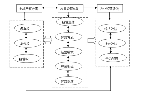 農(nong) 業(ye) 經營體(ti) 製影響農(nong) 業(ye) 經營績效,土地產(chan) 權分離不僅(jin) 直接影響農(nong) 業(ye) 經營績效,還通過影響農(nong) 業(ye) 經營體(ti) 製影響農(nong) 業(ye) 經營績效,同時,土地產(chan) 權分離和農(nong) 業(ye) 經營體(ti) 製之間是一種耦合發展的關(guan) 係。土地所有權、承包權與(yu) 經營權的分離使得產(chan) 權主體(ti) 呈現多元化,使用權越來越完整的分配到農(nong) 戶,排他性增強,這是不斷適應市場經濟發展的需要,促進農(nong) 業(ye) 資源、資金、技術和人才等生產(chan) 要素向經營效益好的專(zhuan) 業(ye) 戶流動,在一定程度上解決(jue) 耕地資源細碎化的弊端,使農(nong) 村土地經營走向規模化、集約化、商品化道路,對其市場化和資本化起到了推動作用,從(cong) 而伴隨著土地“三權分離”,農(nong) 業(ye) 經營主體(ti) 、經營方式、經營模式、經營形式、經營製度的內(nei) 涵都發生了相應的變化。因此,農(nong) 村土地產(chan) 權分離是農(nong) 業(ye) 經營體(ti) 製發展的條件與(yu) 要求,農(nong) 業(ye) 經營體(ti) 製的創新是農(nong) 村土地產(chan) 權製度變遷的誘致性需求結果,農(nong) 業(ye) 經營體(ti) 製的發展會(hui) 促進土地產(chan) 權製度變遷。