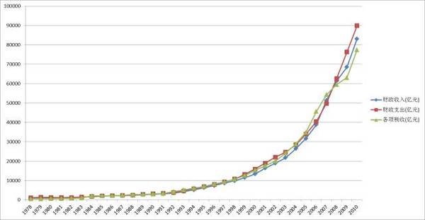 ▲從(cong) 1978年至2010年,政府財政收入不斷增長