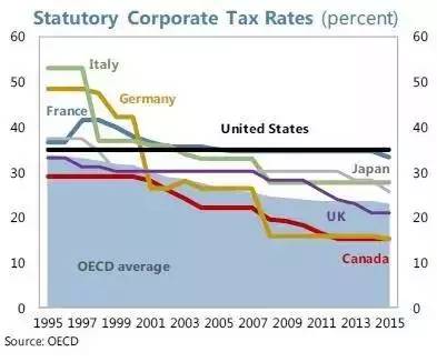第一,減稅。首先是把居民個(ge) 人的所得稅由7檔減少到3檔,對富人減稅,對窮人增加稅率比扣;其次是減公司稅。美國公司稅水平為(wei) 35%,而OECD國家公司稅的趨勢從(cong) 1995年開始逐漸下降,二十年前整體(ti) 是35%左右,今天降到了22%。世界上公司稅最低的是英國和加拿大,隻有15%。公司稅有全球競爭(zheng) 的因素,美國的公司稅有下降和調整的餘(yu) 地。而且共和黨(dang) 從(cong) 來是要減稅促進增長,所以我覺得減稅一定會(hui) 做。