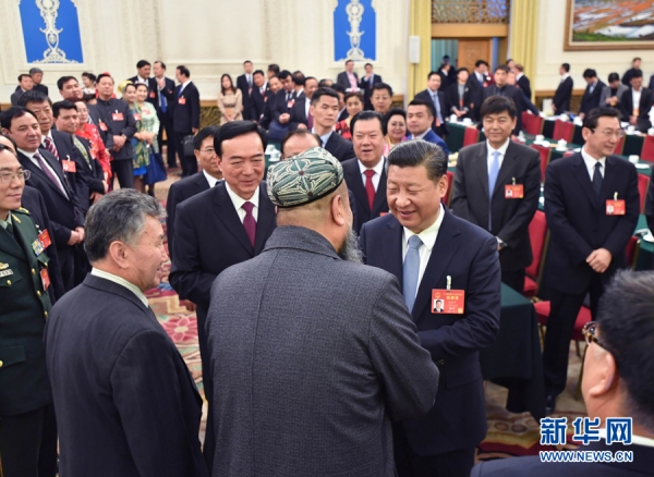 2017年3月10日,習(xi) 近平在新疆代表團參加審議時說,要全麵貫徹黨(dang) 的民族政策,高舉(ju) 各民族大團結旗幟,引導各族群眾(zhong) 增強對偉(wei) 大祖國、中華民族、中華文化、中國共產(chan) 黨(dang) 、中國特色社會(hui) 主義(yi) 的認同,像愛護自己的眼睛一樣愛護民族團結,像珍視自己的生命一樣珍視民族團結,像石榴籽那樣緊緊抱在一起。