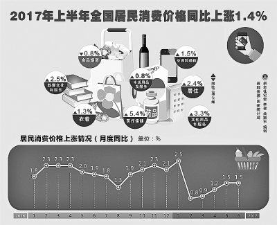 ——物價(jia) 形勢總體(ti) 穩定。上半年全國居民消費價(jia) 格同比上漲了1.4%,與(yu) 一季度基本持平;扣除食品和能源價(jia) 格的核心CPI基本穩定,上半年核心CPI同比上漲2.1%。
