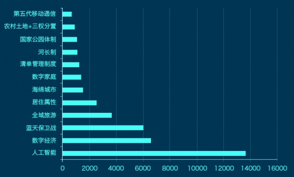 據有關(guan) 統計顯示,今年首次出現在《政府工作報告》裏的諸多新詞中,“人工智能”受關(guan) 注度排行第一,超過第二名“數字經濟”一倍多。