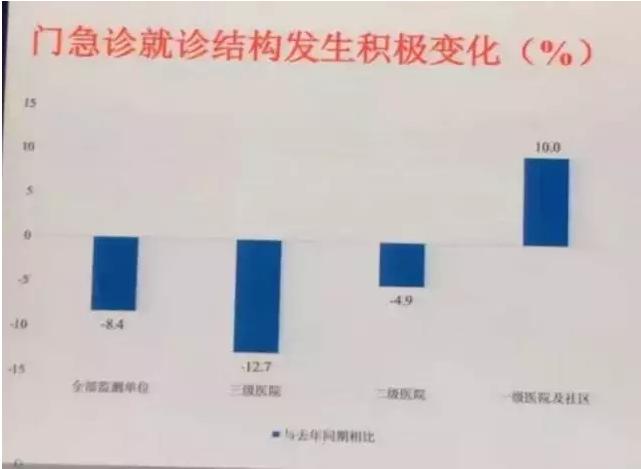 醫改運行100天,全市完成了6000萬(wan) 人次的診療服務,3100所參與(yu) 醫改的醫療機構運行情況平穩。日常監測信息顯示,三級醫院的門診量減少了12.7%,“最高的時候曾經減少到了16%。”雷海潮介紹說,二級醫院也有所下降,而基層醫療衛生機構和一級醫院的診療量出現了明顯上升,增幅達10%。
