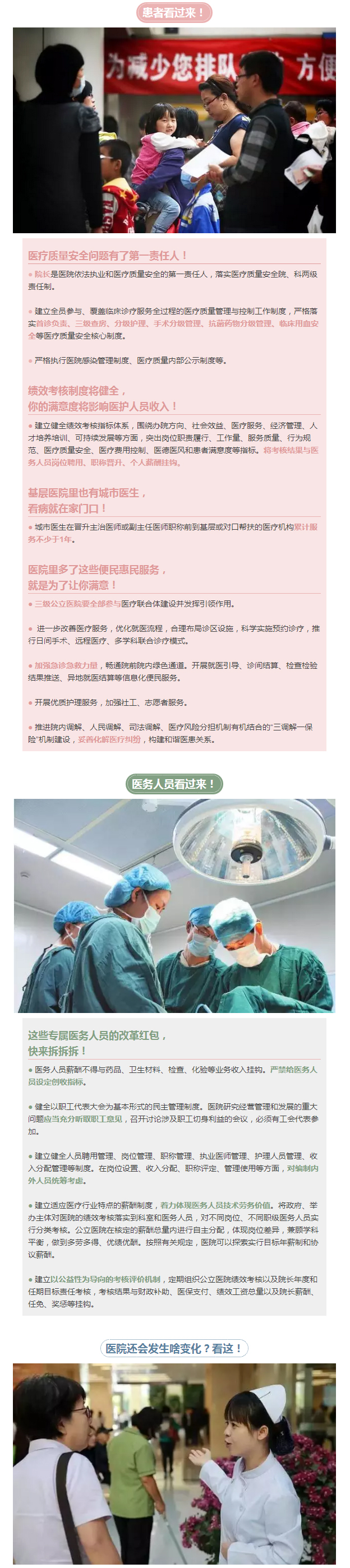 老百姓看病就醫一直是李克強總理深切牽掛的事,他明確要求,“深化醫改要從(cong) 老百姓最關(guan) 心的問題突破”。公立醫院改革正是深化醫改的“主戰場”。日前,國辦印發《關(guan) 於(yu) 建立現代醫院管理製度的指導意見》,提出到2020年基本形成現代醫院管理製度。未來,看病就醫將發生哪些新變化?醫務人員又會(hui) 收獲哪些改革紅利?中國政府網(微信ID:zhengfu)、國務院客戶端帶你看——