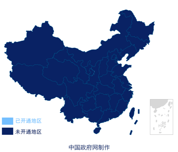 (基本醫療保險跨省異地就醫住院醫療費用直接結算地區 三期開通示意圖)