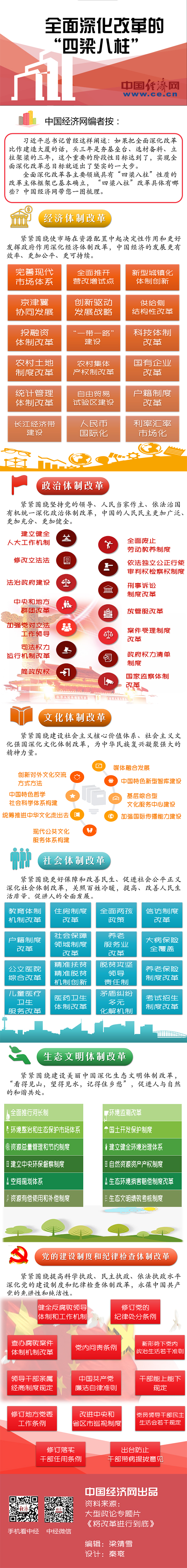 全麵深化改革各主要領域具有“四梁八柱”性質的改革主體(ti) 框架已基本確立, “四梁八柱”改革具體(ti) 有哪些?中國經濟網帶您一圖梳理。