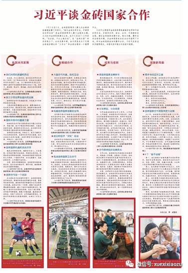 針對金磚國家該如何攜手合作,習(xi) 近平發表過許多重要觀點。學習(xi) 小組推薦閱讀《人民日報海外版》進行的梳理。