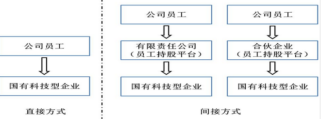 答:激勵對象可以采用直接持有激勵股權;也可以通過設立有限責任公司或合夥(huo) 企業(ye) 持股平台,采用間接持股的方式持有激勵股權。需要注意的是,間接持股單位不得與(yu) 企業(ye) 存在同業(ye) 競爭(zheng) 關(guan) 係或發生關(guan) 聯交易。如下圖所示: