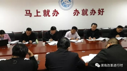 16日下午,渭南市委副秘書(shu) 長、政研室主任、改革辦主任黨(dang) 國棟主持召開了全麵深化改革第三方評估課題調研匯報會(hui) ,會(hui) 上市委各改革專(zhuan) 項組匯報了專(zhuan) 項組領域近年來改革亮點工作、市級相關(guan) 改革任務牽頭部門匯報了重點亮點改革任務進展情況、合陽縣委副書(shu) 記於(yu) 娟俠(xia) 匯報了合陽縣農(nong) 村“三變”改革工作經驗。