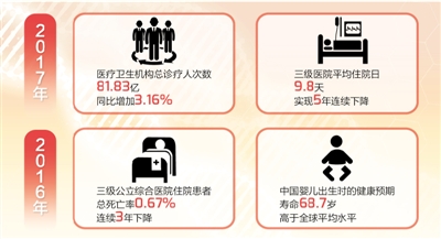 2017年,我國醫療質量呈現“四升一降”的趨勢。一是醫療資源供給持續增加。2017年全國醫療衛生機構總診療人次數約為(wei) 81.83億(yi) ,較2016年和2014年分別增加3.16%和7.64%。二是醫療服務效率有所提升。2017年三級和二級醫院平均住院日分別為(wei) 9.8天和8.7天,較2016年分別下降0.3天和0.1天,實現5年連續下降。三是部分專(zhuan) 科、重點病種和手術診療質量穩中有升。如麻醉技術應用人群從(cong) 子宮內(nei) 胎兒(er) 、新生兒(er) 到百歲老人,擴大了手術麻醉服務的可及性。我國麻醉相關(guan) 死亡率約為(wei) 12/百萬(wan) ,顯著低於(yu) 141/百萬(wan) 的發展中國家平均水平,與(yu) 發達國家的10/百萬(wan) 左右相當。四是臨(lin) 床合理用藥水平不斷提升。2016年門診、住院患者抗菌藥物使用率從(cong) 2010年的22.0%和68.7%分別下降到8.7%和37.5%,細菌耐藥趨勢總體(ti) 平穩。五是住院患者死亡率持續下降並穩定在較低水平。三級公立綜合醫院住院患者總死亡率由2014年的0.74%下降至2016年的0.67%,實現連續3年下降。