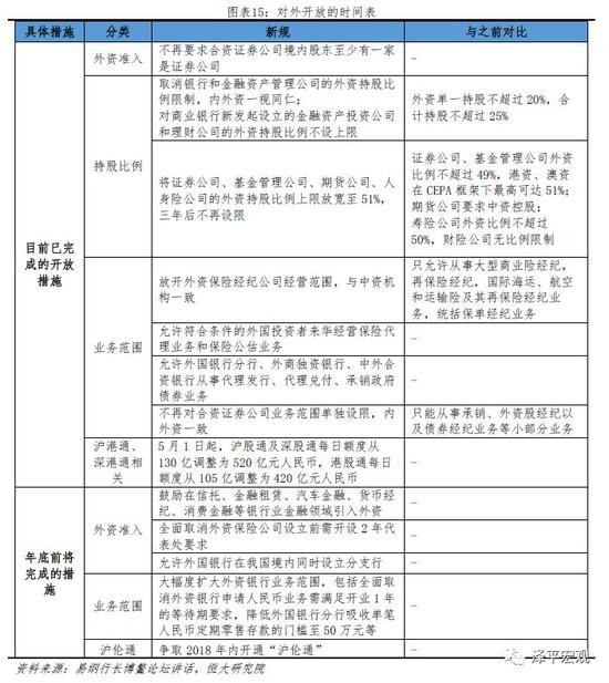 習(xi) 總書(shu) 記在2018年4月10日的博鼇講話中提出,“在服務業(ye) 特別是金融業(ye) 方麵,去年年底宣布的放寬銀行、證券、保險行業(ye) 外資股比限製的重大措施要確保落地,同時要加快保險行業(ye) 開放進程,放寬外資金融機構設立限製,擴大外資金融機構在華業(ye) 務範圍,拓寬中外金融市場合作領域”,標誌著中國新一輪金融開放的開始。4月11日,易綱行長宣布了進一步擴大金融業(ye) 對外開放的時間表和具體(ti) 措施。