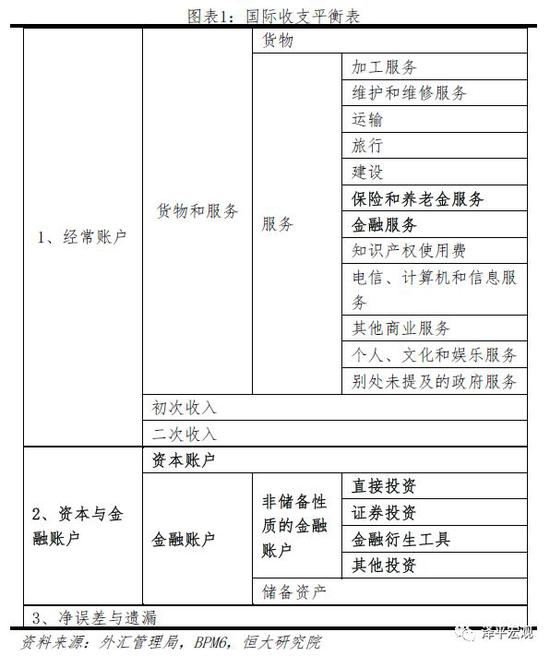 從(cong) 國際收支平衡表來看,資本與(yu) 金融賬戶開放主要反映在其對應項目下,而金融服務業(ye) 的開放除了反映在“金融賬戶”中,也體(ti) 現在經常賬戶中的“金融服務”和“保險服務”。
