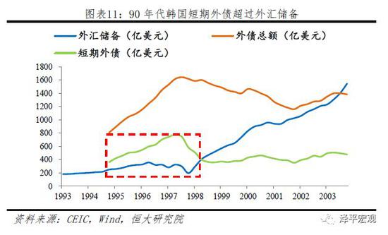進入90年代中期,美國經濟開始強勁複蘇,美元步入新一輪強勢周期,采取固定匯率製度的東(dong) 南亞(ya) 國家貨幣被迫升值,出口大幅減弱,經常賬戶加速惡化,同時人民幣大幅貶值,中國在吸引外資和增加出口方麵具有強大競爭(zheng) 力。1997年泰銖、比索、印尼盾、韓元等先後成為(wei) 國際投機資本攻擊對象,資本大幅流出。在內(nei) 部經濟結構扭曲疊加外部東(dong) 南亞(ya) 危機沉重打擊下,金融開放引入的短期資本的逃離成為(wei) 韓國外匯危機的重要原因,引發了金融危機,最終升級成全麵經濟危機。