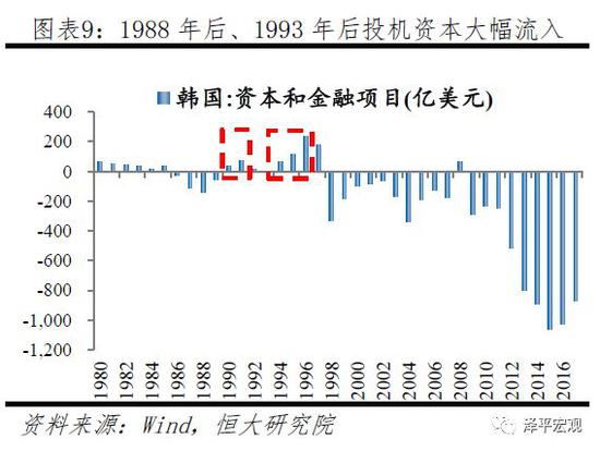 總的來說,80-90年代,韓國在內(nei) 外雙重壓力推動下的開放出現兩(liang) 方麵問題,一是資本項目開放不對稱,短期資本項目限製放開,投機資本流入,導致短期外債(zhai) 迅速增長,風險暴露,二是金融機構及金融市場領域沒有形成相應的配套監管措施,滋生監管套利空間,金融風險積聚,過剩產(chan) 能難以出清。1989年前後是韓國經濟減速的轉折點(Barry,Dwight等,2012),經濟減速導致重化工業(ye) 產(chan) 能過剩狀況進一步加重,企業(ye) 效益惡化與(yu) 高負債(zhai) 引起金融機構壞賬累積,在政府隱性擔保的情況下,過剩產(chan) 能難以退出。在加大金融開放和非銀機構擴張的背景下,總體(ti) 寬鬆的貨幣政策使企業(ye) 更易獲得融資,陷入產(chan) 能過剩和金融加杠杆的惡性循環,加重經濟結構扭曲。