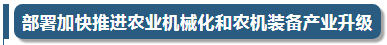 1、提升水稻、小麥、玉米、馬鈴薯、油菜、棉花、甘蔗等主要農(nong) 作物機械化種采收水平。對開展深耕深鬆、機播機收等按規定給予補助。對購買(mai) 國內(nei) 外農(nong) 機產(chan) 品一視同仁,鼓勵金融機構開展抵押貸款,鼓勵地方給予貼息支持。引導有條件的地方率先基本實現主要農(nong) 作物生產(chan) 全程機械化。