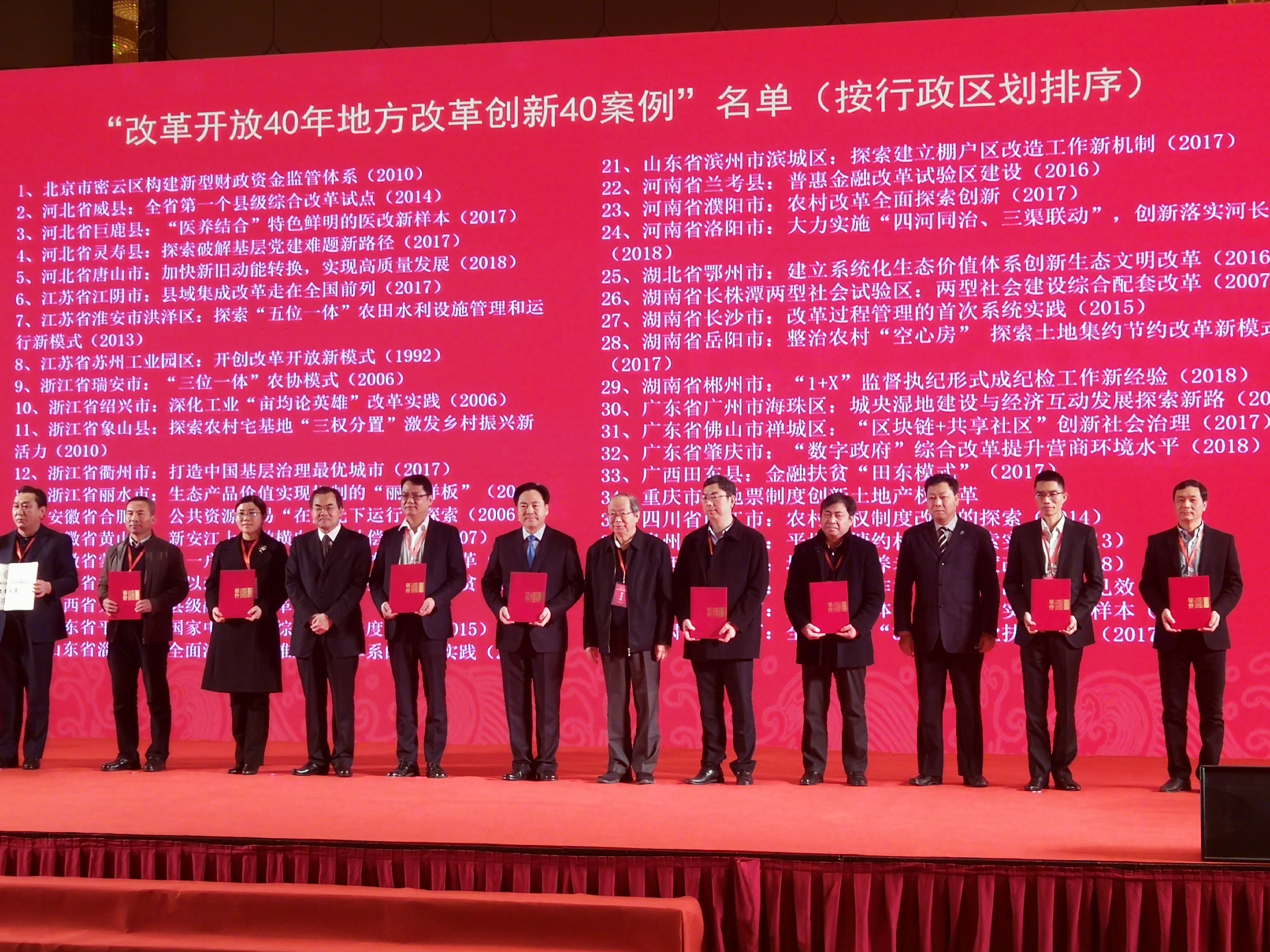 為(wei) 響應中央關(guan) 於(yu) 慶祝改革開放40年號召,貫徹習(xi) 近平總書(shu) 記在慶祝改革開放40周年大會(hui) 重要講話精神,中國經濟體(ti) 製改革雜誌社舉(ju) 辦的“改革開放40年开云kaiyun官方創新40案例”(簡稱“40年40案例”)征集活動於(yu) 12月27日在江蘇省江陰市舉(ju) 辦的“kaiyun官方地址(2018)年會(hui) ”上,揭曉最終名單。180多位來自全國20多個(ge) 省區市的各級改革部門負責人參加了發布會(hui) 議。“改革開放40年开云kaiyun官方創新致敬案例”名單同時發布。