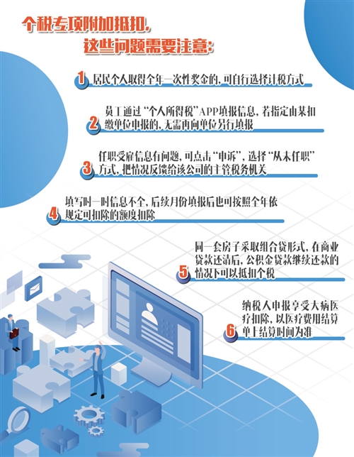 居民個(ge) 人取得全年一次性獎金的,可以自行選擇計稅方式,全年一次性獎金政策的優(you) 勢是單獨計稅,不與(yu) 當期綜合所得合並計算,從(cong) 而“分拆”收入,降低稅率;通過“個(ge) 人所得稅”APP成功填報的專(zhuan) 項附加扣除信息,若填報時指定由某扣繳單位申報的,無需再向該扣繳單位另行填報——