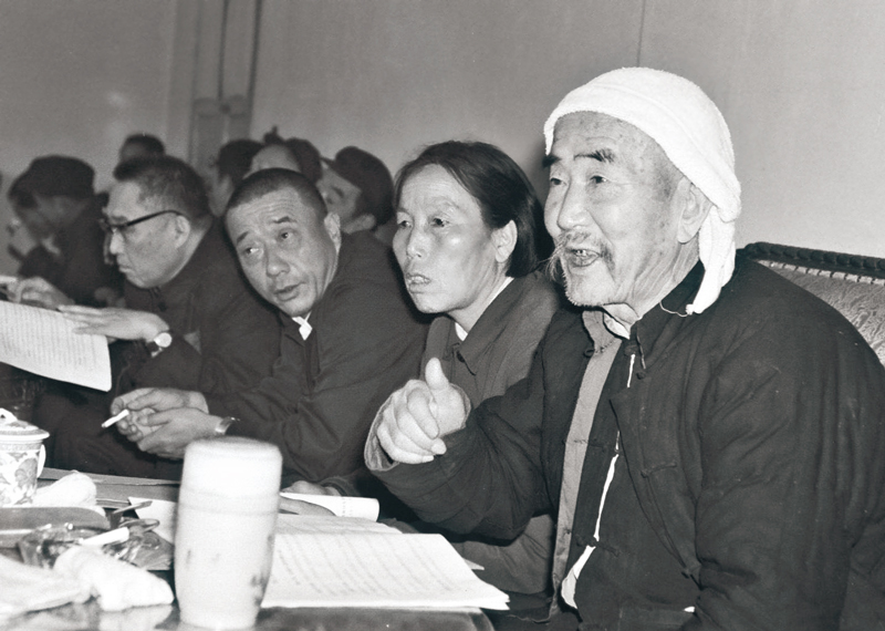 1982年11月29日,出席五屆全國人民代表大會(hui) 第五次會(hui) 議的山西省代表團分組審議憲法修改草案。圖為(wei) 全國勞動模範、植棉能手吳吉昌在發言。 新華社記者 王新慶/攝