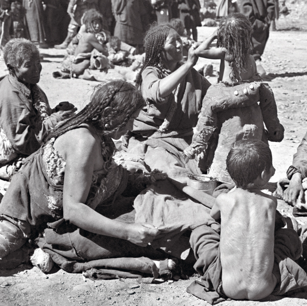 西藏民主改革前,婦女的社會(hui) 地位很低。西藏民主改革後,婦女的社會(hui) 地位迅速提高。上圖為(wei) 1960年麵帶笑容的拉薩青年婦女(人民畫報 何世堯/攝)。下圖為(wei) 民主改革前饑寒交迫的女奴(資料圖片 西藏日報社供圖)。