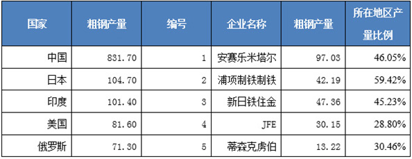 圖表1 2017年世界主要鋼鐵企業(ye) 的粗鋼產(chan) 量情況(單位百萬(wan) 噸、%)