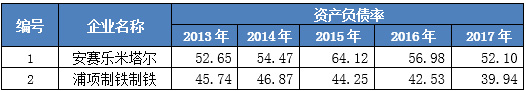 圖表5 世界鋼鐵企業(ye) 資產(chan) 負債(zhai) 率比較