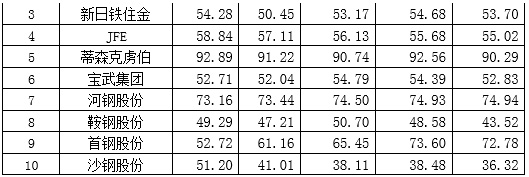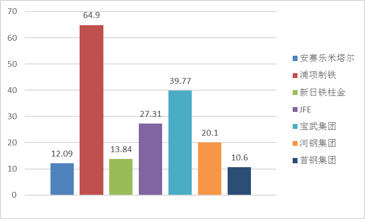 從(cong) 綜合指標分析看,寶武集團已邁入世界一流大型鋼鐵企業(ye) 集團行列,其他企業(ye) 在發展質量上與(yu) 新日鐵住金、浦項製鐵等還有差距。[注:我們(men) 選取了寶武集團、河鋼股份、沙鋼股份、首鋼股份、鞍鋼股份五家中國世界五百強企業(ye) (世界粗鋼產(chan) 量前十),與(yu) 安賽樂(le) 米塔爾(盧)、浦項製鐵製鐵(韓)、新日鐵住金(日)、JFE(日)、蒂森克虜伯(德)五家世界鋼鐵巨頭等進行比較。]