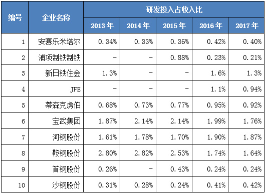 圖表7 世界鋼鐵企業(ye) 研發投入強度比較