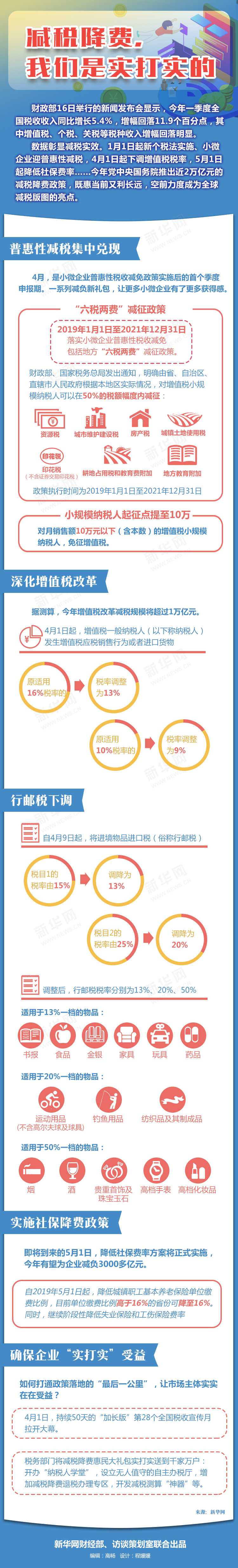 數據彰顯減稅實效。1月1日起新個(ge) 稅法實施、小微企業(ye) 迎普惠性減稅,4月1日起下調增值稅稅率,5月1日起降低社保費率……今年黨(dang) 中央國務院推出近2萬(wan) 億(yi) 元的減稅降費政策,既惠當前又利長遠,空前力度成為(wei) 全球減稅版圖的亮點。