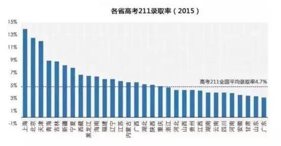 這種高校跨省分布格局,疊加各個(ge) 高校在本身投放招生名額的現實,造成了各省之間重點大學錄取率的差異。