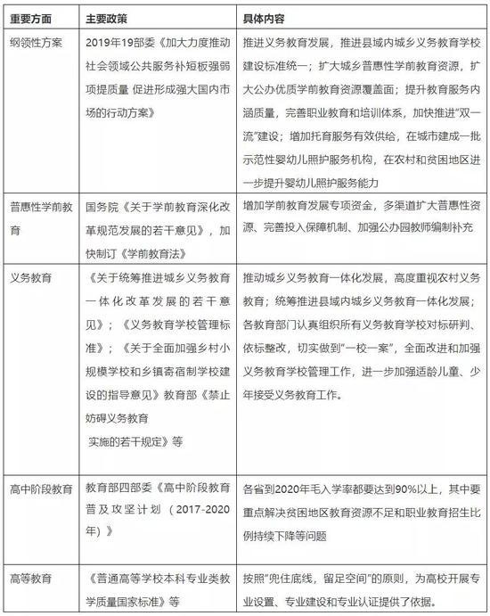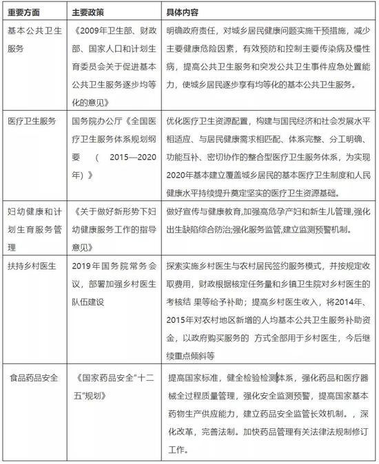 2017年12月,國務院印發《“十三五”推進基本公共服務均等化規劃的通知》,提出到2020年,基本公共服務體(ti) 係更加完善,體(ti) 製機製更加健全,在學有所教、勞有所得、病有所醫、老有所養(yang) 、住有所居等方麵持續取得新進展,基本公共服務均等化總體(ti) 實現。在關(guan) 注度較高的教育、醫療以及就業(ye) 領域,出台了一係列規劃方案。