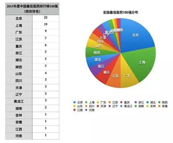 與(yu) 教育資源的空間分布類似,我國的醫療資源分布也呈現出一定的地域差異。以三甲醫院為(wei) 例,北京協和醫院、四川大學華西醫院、中國人民解放軍(jun) 總醫院,這三家醫院已連續多年分別蟬聯冠、亞(ya) 、季軍(jun) 。此外,全國最好的醫療資源主要集中的北京、上海、廣州這三座城市,排行榜100家醫院中,這三個(ge) 城市占了一半,而另外的一半則被其它省市瓜分。