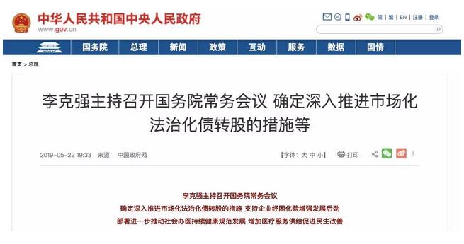 國務院常務會(hui) 指出,去年以來債(zhai) 轉股已落地超過9000億(yi) 元人民幣,促進了企業(ye) 杠杆率下降和經營效益提升。下一步要直麵問題、破解難題,著力在債(zhai) 轉股增量、擴麵、提質上下功夫。