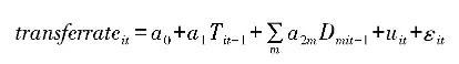 其中,transferrateit表示i省t期農(nong) 地流轉率;Tit-1表示i省t-1期的“還權賦權”或“確權強能”程度。需要指出的是,由於(yu) “政府推進力度”變量是采用各省政府工作報告刻畫的,這類文件均是在當年年初或上一年年末發布實施,是當年農(nong) 地流轉的嚴(yan) 格前定變量。其餘(yu) 變量均以滯後一期形式引入模型,Dmit-1表示各省的第一產(chan) 業(ye) 產(chan) 值占比、戶均承包地規模、農(nong) 機總動力、農(nong) 地流轉合同等變量的滯後一期。a0為(wei) 常數項,a1和a2m為(wei) 待估計係數。uit表示個(ge) 體(ti) 異質性的截距項,εit為(wei) 隨個(ge) 體(ti) 與(yu) 時間而改變的擾動項,且與(yu) uit不相關(guan) 。