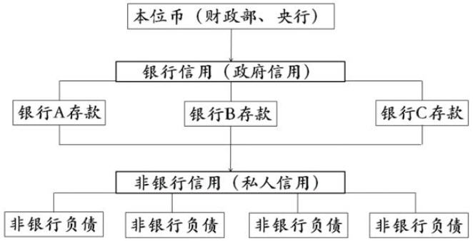 借用明斯基的貨幣金字塔,在金字塔的頂部是本位幣,由中央銀行或者財政部發行,是政府的負債(zhai) ,是信用度最高的貨幣。在本位幣下麵是銀行信用所支持的銀行存款,所謂的廣義(yi) 貨幣。在銀行信用下麵是非銀行、非金融機構之間的債(zhai) 務,在某些特定的環境下,這些債(zhai) 務工具也可以起到支付手段的作用,但其享受的信用一般比銀行信用低。