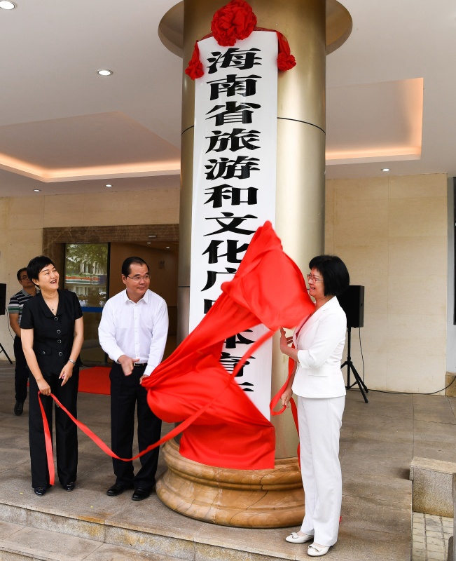 海南省旅遊和文化廣電體(ti) 育廳掛牌成立(2018年9月29日攝)。新華社記者 楊冠宇 攝