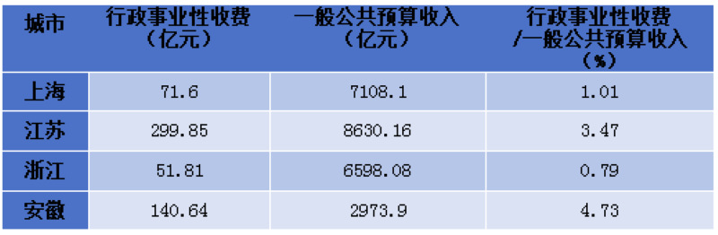 3.三省一市行政事業(ye) 性收費規模比例差異明顯