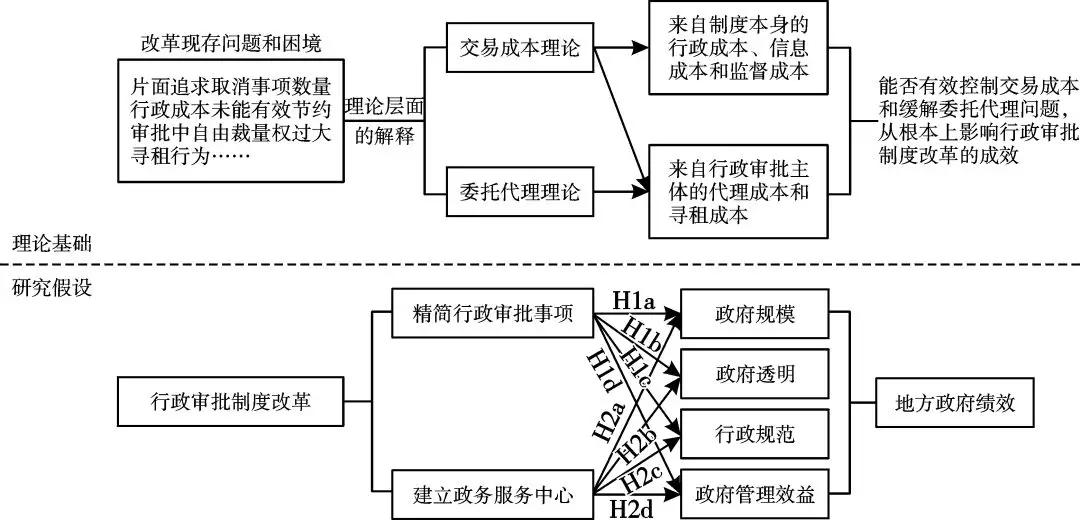 根據已有研究成果,當前我國行政審批製度改革仍存在諸多問題(馬懷德,2016;宋雄偉(wei) ,2017;孫彩紅,2017),行政審批製度作為(wei) 一種製度安排,諸多問題的產(chan) 生源自於(yu) 改革過程中麵臨(lin) 著的重重阻力,多方阻力造成改革效果不及預期,甚至出現新的問題。有研究表明推行改革城市的行政級別越高,遇到的改革阻力越大(朱旭峰、張友浪,2014)。通過分析改革現存困境的深層次原因,能夠更深入地剖析改革對政府績效的影響。由此,本文借鑒新製度經濟學中的交易成本理論和委托代理理論,對行政審批製度改革的影響和成效進行理論層麵的解釋。改革中的阻力因素可歸結為(wei) 行政審批所產(chan) 生的交易成本和代理問題,而改革的直接目的便是要最大化削減交易成本(何雷、韓兆柱,2017),緩解其中存在的代理問題。