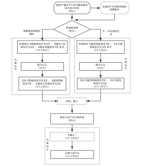 1.一窗受理,並聯審批 2.可自願在平台選取中介,中介前期提前介入,提高設計質量;也可自行找中介 3.通過在線平台內(nei) 部征求意見,在線留痕,無需建房戶跑 |