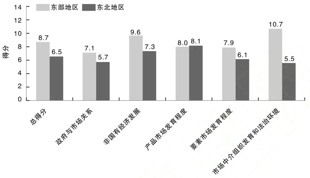 圖 5 東(dong) 北與(yu) 東(dong) 部在市場化指數方麵的差距