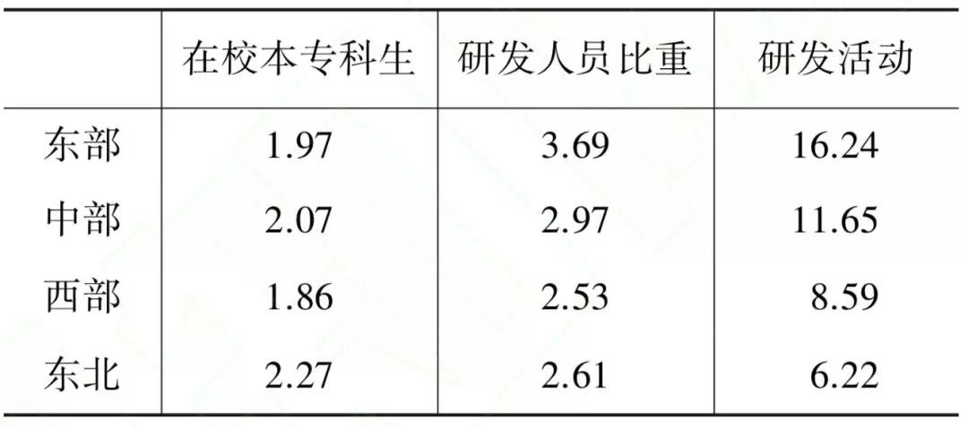 這恰好是東(dong) 北地區的發展機遇。作為(wei) 新中國工業(ye) 化的先行者,東(dong) 北地區的製造業(ye) 特別是裝備製造業(ye) 基礎並不薄弱。東(dong) 北地區所需要的是找到突破口,投身製造業(ye) 優(you) 化升級過程,在重塑自身並贏得優(you) 勢地位的情況下,其基礎條件的作用才能得到發揮。以人力資本為(wei) 例,從(cong) 每萬(wan) 人常住居民對應的大學本專(zhuan) 科在校生數字看,東(dong) 北地區與(yu) 其他地區相比都占有優(you) 勢,然而,從(cong) 企業(ye) 研發人員占比和企業(ye) 研發活動頻率看,東(dong) 北地區卻排在後麵(見右表)。這意味著在經濟增長不活躍地區,即便培養(yang) 了人才也不能為(wei) 己所用,不能轉化為(wei) 生產(chan) 率的提高。可見,把諸如人力資本流量這樣的優(you) 越條件轉化為(wei) 提升製造業(ye) 價(jia) 值鏈位置的動能,需要一個(ge) 臨(lin) 界最小突破力。