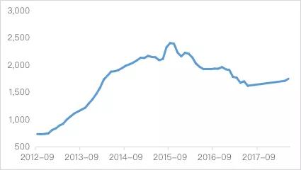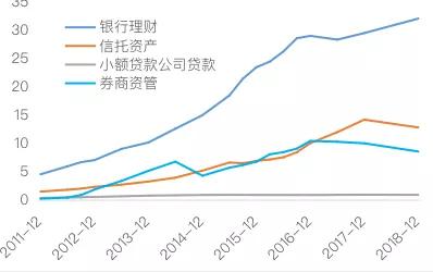 圖2 影子銀行發展情況,2011年-2018年(萬(wan) 億(yi) 元)