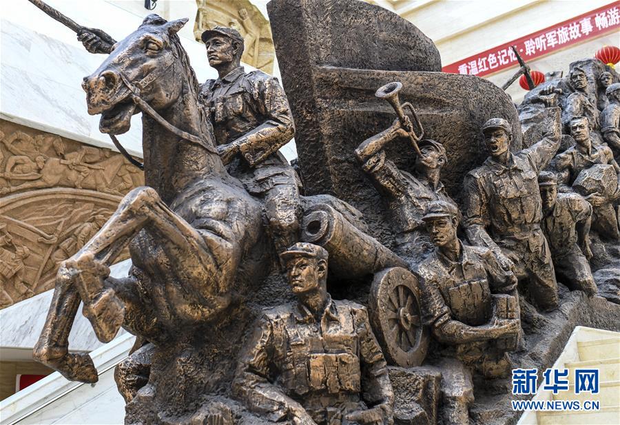 這是在新疆生產(chan) 建設兵團第六師五家渠市博物館內(nei) 展出的大型雕塑《軍(jun) 墾魂》(7月31日攝)。新華社記者 王菲 攝