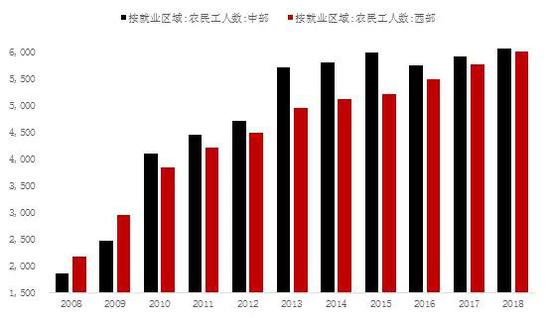 一提到中低收入群體(ti) ,首先的印象就是農(nong) 民工。根據國家統計局每年發布的《農(nong) 民工監測調查報告》,農(nong) 民工的流向已經發生了巨大變化,農(nong) 民工的增量部分主要流向中部和西部地區。例如2018年東(dong) 部地區的農(nong) 民工數量減少185萬(wan) 人,東(dong) 北地區農(nong) 民工數量減少9萬(wan) ,而中西部地區則增加378萬(wan) ,呈現“孔雀西南飛”的特征。