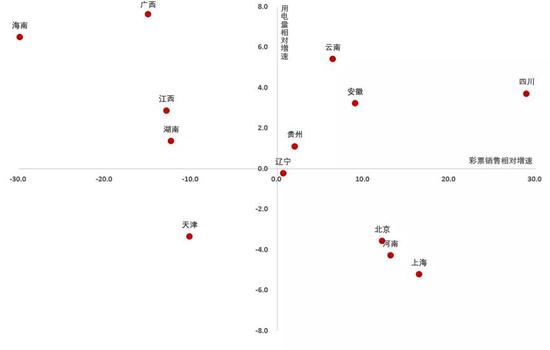 (3)廣西、江西、湖南、海南。用電量相對增速較高,表明經濟活躍程度要高於(yu) 全國平均水平,中低收入群體(ti) 的數量可能出現了增加。彩票銷售相對增速較低,表明了中低收入群體(ti) 的獲得減少。反映了分配結構向中高端傾(qing) 斜,這種非均衡的發展模式,在區域經濟發展的初級階段,較為(wei) 有利於(yu) 產(chan) 業(ye) 發展。