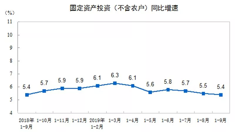 今年以來,固定資產(chan) 投資增速呈現緩中趨穩態勢。9月份,固定資產(chan) 投資累計同比增長5.4%,機構普遍預期即將於(yu) 明日公布的10月份投資累計增速或與(yu) 9月持平。