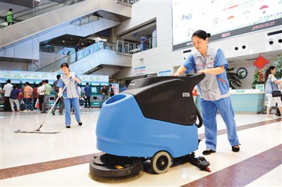 兩(liang) 位清潔工在安徽省銅陵市人力資源和社會(hui) 保障局開發的市人民醫院公益性崗位上工作。過仕寧 攝(人民圖片)