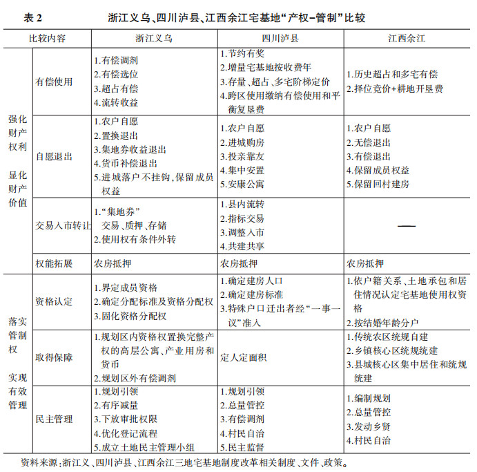 浙江義(yi) 烏(wu) 、四川瀘縣和江西餘(yu) 江是最早開展宅基地製度改革試點的地區,試點之前這些地區亦不乏自行探索。浙江義(yi) 烏(wu) 是發達地區宅基地問題矛盾突出的代表,由於(yu) 義(yi) 烏(wu) 市人口城鎮化快於(yu) 土地城鎮化,呈現城市生長在村莊(宅基地)上的狀況,存在大量以村莊形態為(wei) 主的集體(ti) 建設用地並有擴大趨勢,亟需通過市場化解決(jue) 宅基地資源配置和有效管理。四川瀘縣和江西餘(yu) 江雖同屬傳(chuan) 統農(nong) 區,前者麵臨(lin) 的問題是如何將受限的宅基地激活促進鄉(xiang) 村產(chan) 業(ye) 發展、村莊適度集聚和城鄉(xiang) 建設用地利用結構的優(you) 化,而後者更側(ce) 重解決(jue) 宅基地管理無序問題。