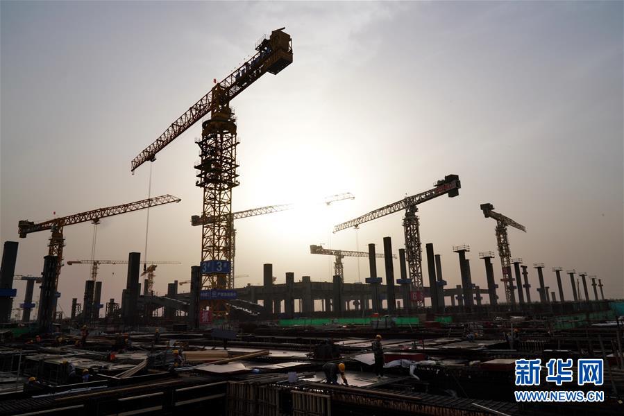 這是3月18日拍攝的京雄城際鐵路雄安站施工現場。 新華社記者 牟宇 攝