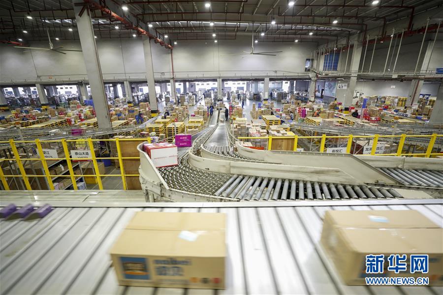 在重慶國際物流樞紐園區的永輝物流配送中心常溫庫,自動化分揀係統分發永輝超市各門店所需的貨品(3月16日攝)。 新華社發 (黃偉(wei) 攝)