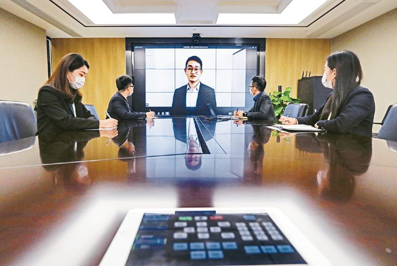 隨著疫情防控和複工複產(chan) 有序推進,要優(you) 化招用工舉(ju) 措,著力推進線上就業(ye) 服務和技能培訓,推動市場供求匹配,保障企業(ye) 用工和勞動力就業(ye) 應聘雙向需求。圖為(wei) 2020年3月3日,在浙江省寧波市江北區的一家公司,一場線上“雲(yun) 麵試”正在進行,負責招聘麵試的工作人員通過遠程視頻連線,和在家裏的求職者進行線上對話。 人民圖片 章勇濤/攝